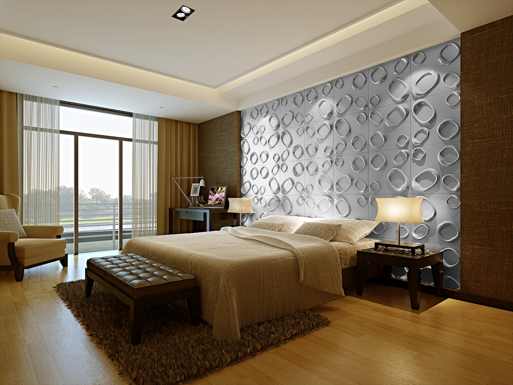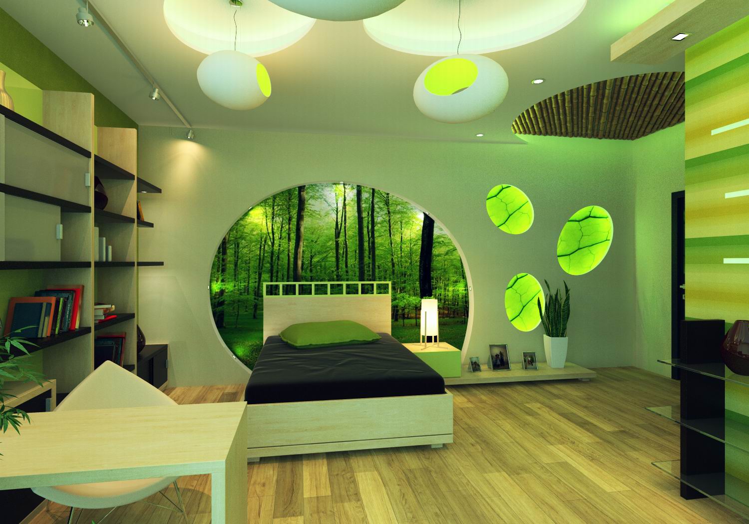 The choice will depend on the style decision of the bedroom. For example, for a high-tech room, images of labyrinths, technical pictures, drawings, space bodies and various abstract images will be the ideal solution. This style is quite popular today, so finding the right image is not difficult.