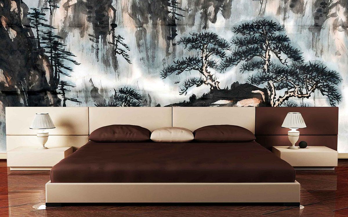 In general, if we take into account the recommendations of Feng Shui, then you should focus on special techniques. Types of a birch grove, a quiet lake, a pacifying water surface will allow not only to create an ideal atmosphere for the bedroom, but also to attract additional monetary energy to life.