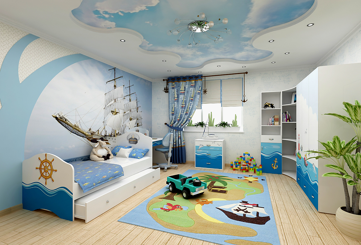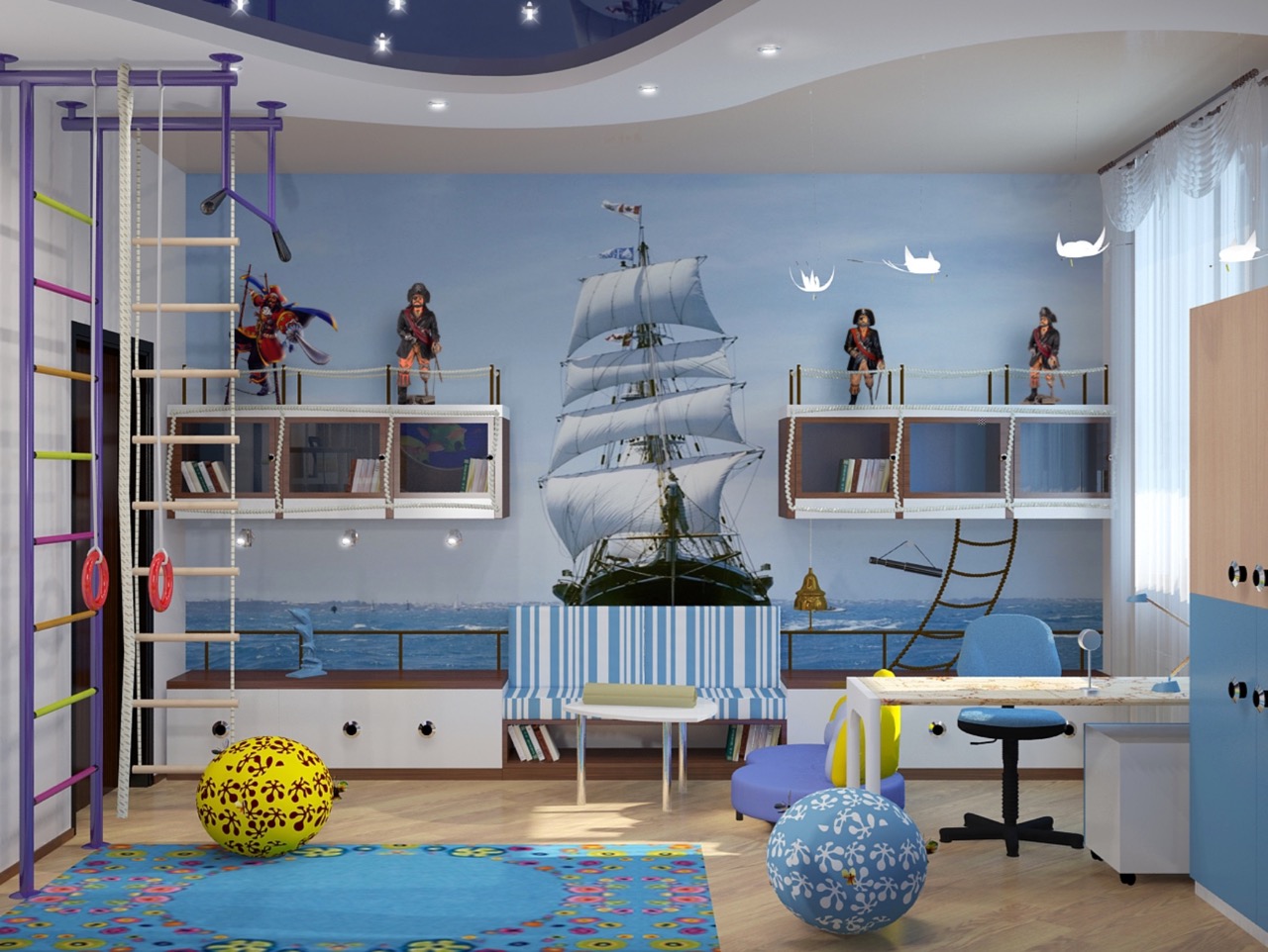 For a boy, you can create a room of a real pirate, with images of sea battles, sea surface, anchors and various pirate stuff.