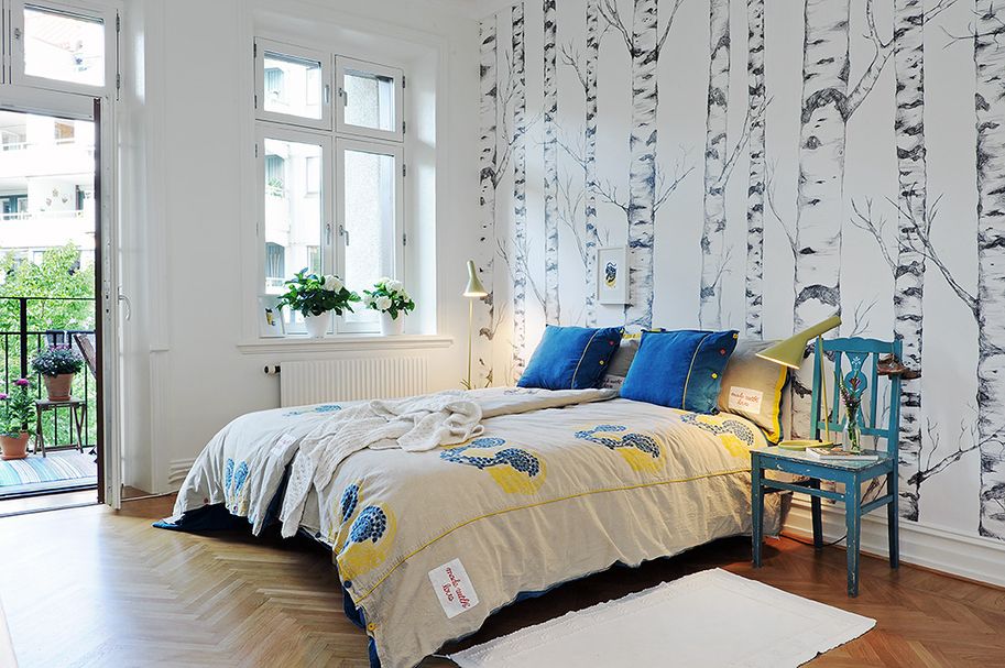 So, the use of photo wallpaper in the bedroom is quite a popular solution these days.