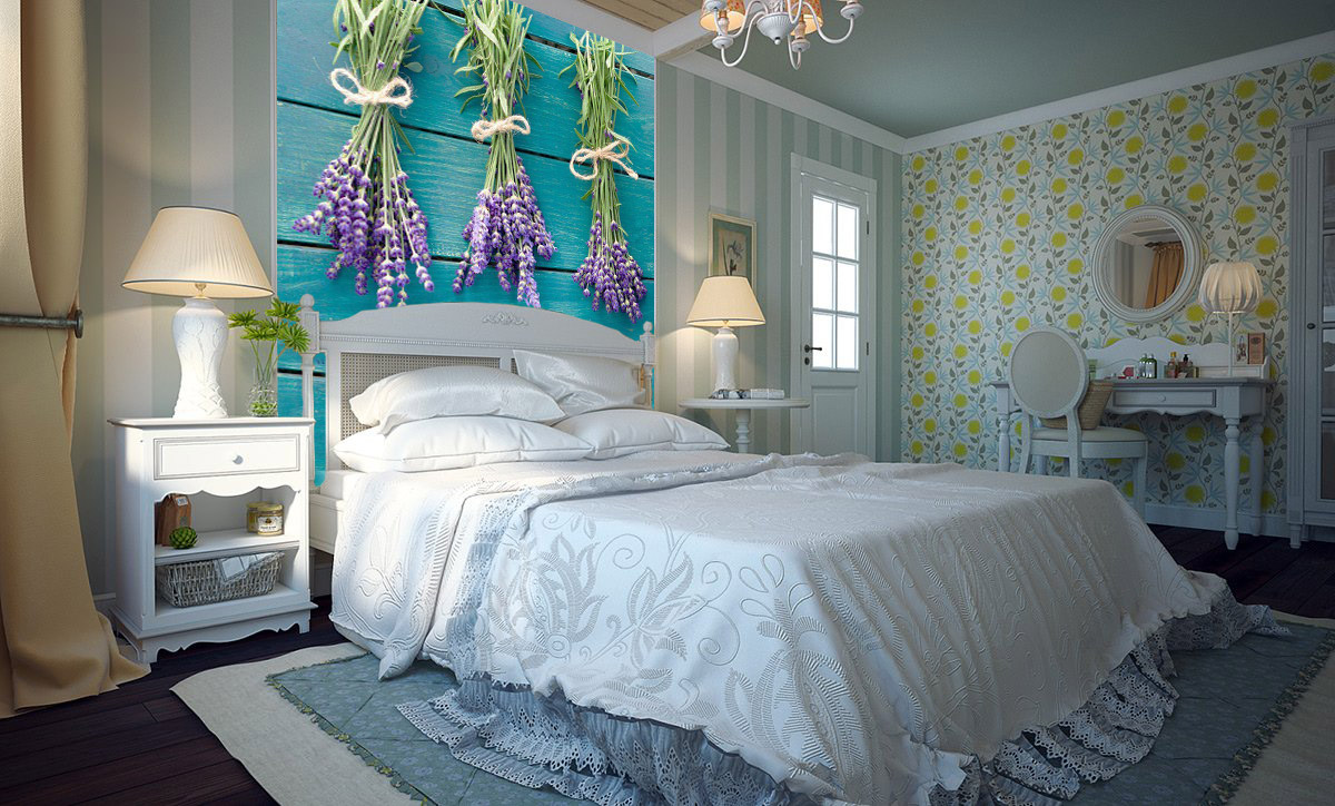As for the style decision, trends tend to the design in the style of Provence. Here you can see the image of lavender fields, small floral drawings, light aerial landscapes. Such an interior will be as correct as possible in feng shui, since it is the Provence that is able to create the most relaxing atmosphere.
