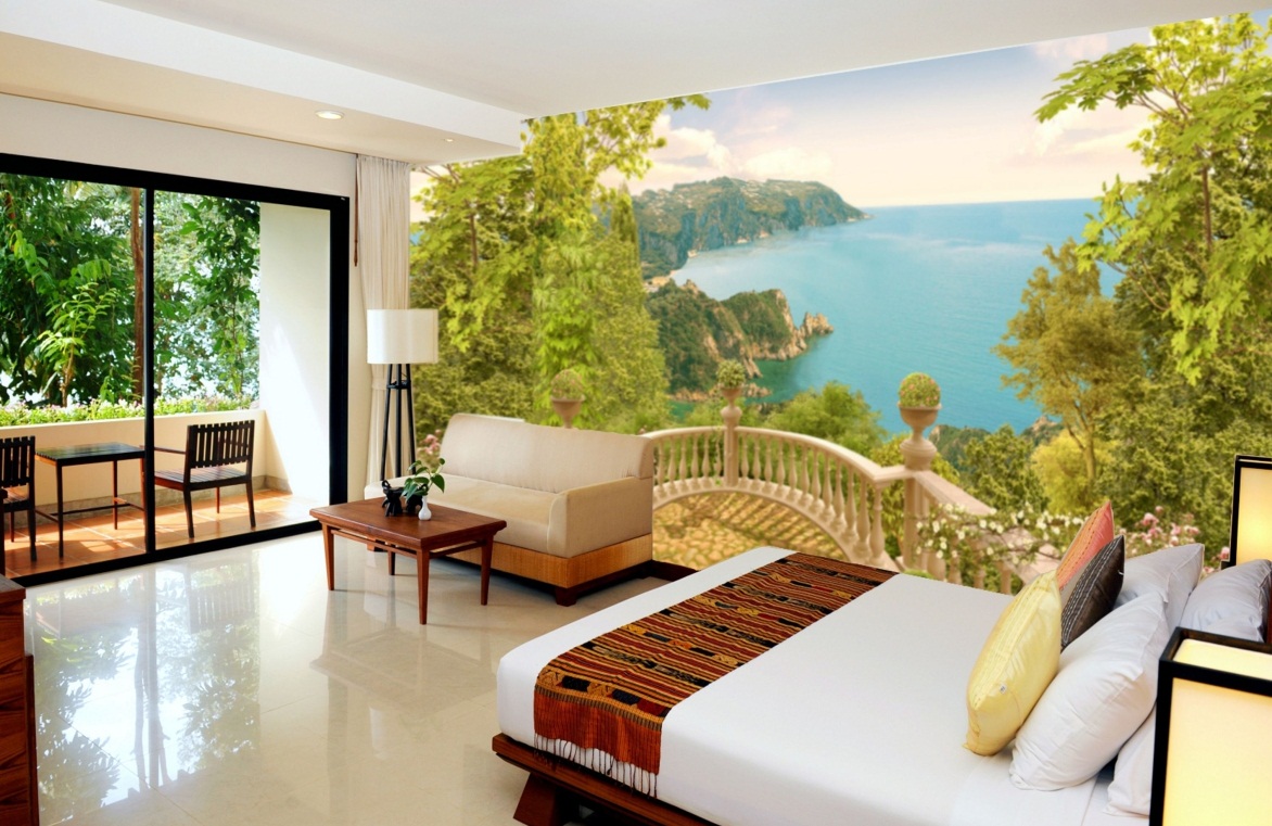 Such images promote maximum relaxation., stimulate a surge of creative abilities, evoke a dreamy mood and contribute to high-quality high-grade rest.Deep mountain lakes, majestic waterfalls, raging rivers, mountains, landscapes with sea and ocean smooth surface, wild beaches and forest, alpine meadows and flower fields - all this really fills the room with fresh air, and the person feels like a breath of wind or hears the sound of the sea the surf.