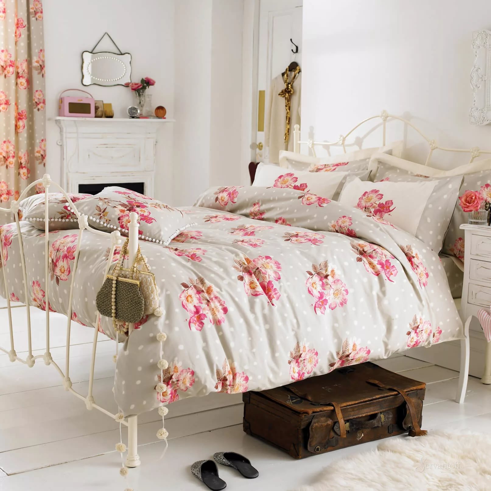 The room can be decorated with artificial flowers in vases. Its main function is coziness, however, nothing should restrain lovers of flower colors of bedspreads and wallpapers.