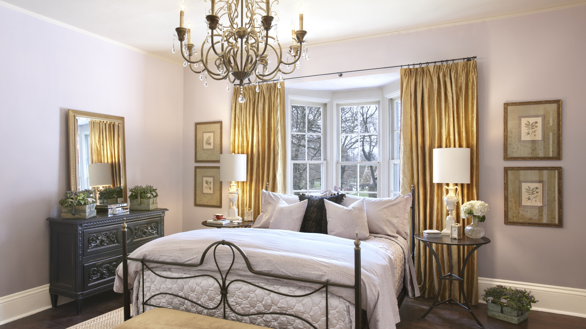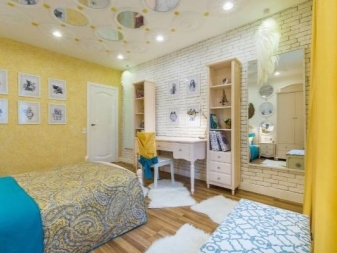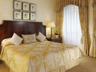 This color gives the room coziness and is usually used with a lack of light. Clean, bright yellow is not suitable for the bedroom, but its pastel shades on the contrary, will look appropriate in the bedroom. Yellow is considered to be universal and suitable to the entire palette. But it should be noted that, in conjunction with a black tone, it can give a feeling of anxiety, since these two colors are considered the brightest existing contrast.