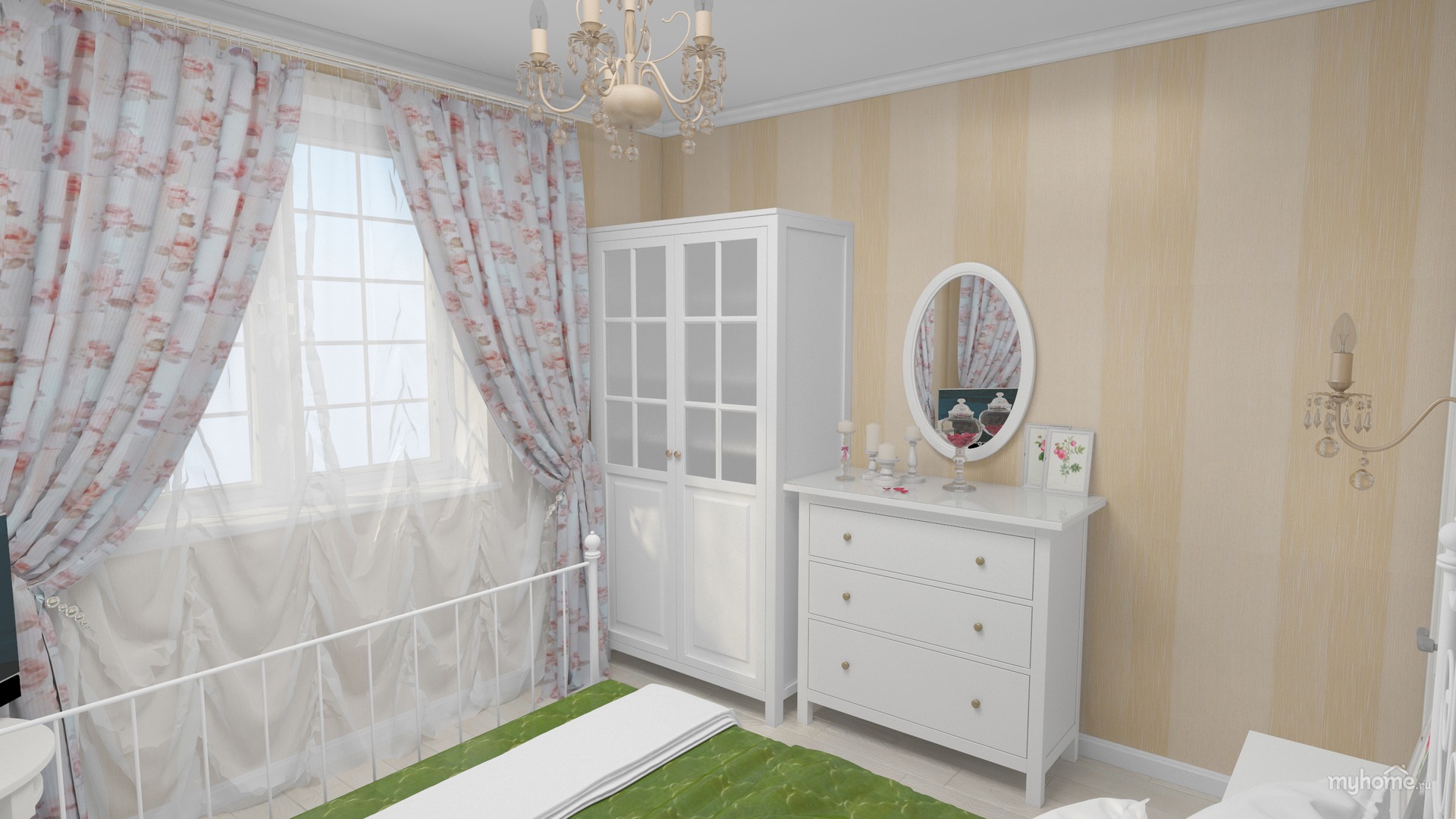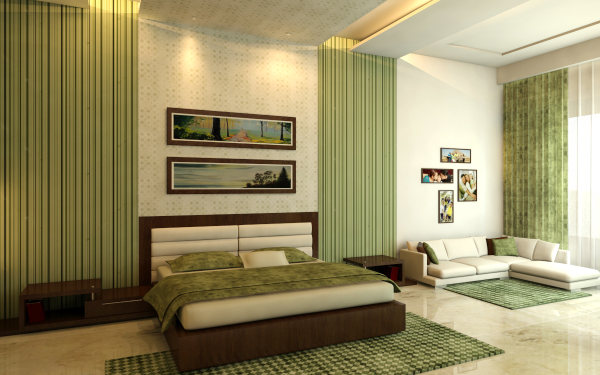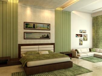 This color is characterized as soothing and cold. It can be used in sunny rooms to give a cool feeling. In addition, various shades of green can visually enlarge and narrow the space of the room. Green color is suitable for bedrooms of impulsive personalities, giving them peace.