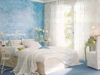 When sticking it is necessary to take into account that the wallpaper does not have the property to change its size. Typical adhesives are not suitable for working with glass fiber material. The easiest option is to use PVA glue.Among the minuses, you can highlight the high price and fragility of the canvas, which is why you need to work with fiberglass wallpaper very carefully so as not to break the coating. In addition to the bedroom, wallpaper can be stuck in the nursery, living room or bathroom.