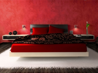 This is an atmospheric color that dominates everything else in the interior. Best of all this color will look in the bedrooms of strong people, giving them a sense of passion. However, a glut of red may not give households a feeling of proper rest, therefore in the bedroom it is better to use it in combination with furniture of light and calm colors and the following colors: white, gray, beige.