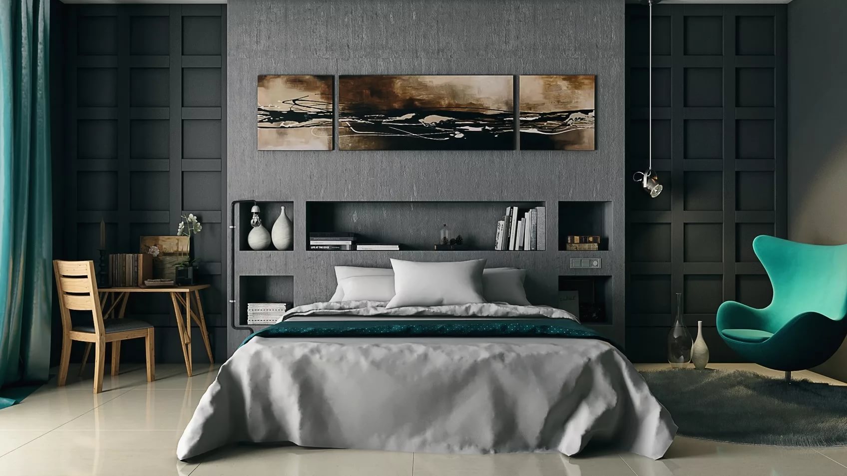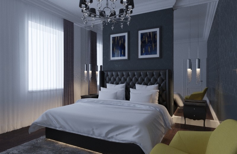 Grey colour is the most neutral when it comes to the saturation of white and black colors. The bedroom will give this color a feeling of relaxation and tranquility, what is necessary for people to rest after the working day. But this color is contraindicated for melancholic persons, as it can evoke boredom and sadness.On the contrary, hyperactive individuals can safely use this color scheme in the design of the walls.