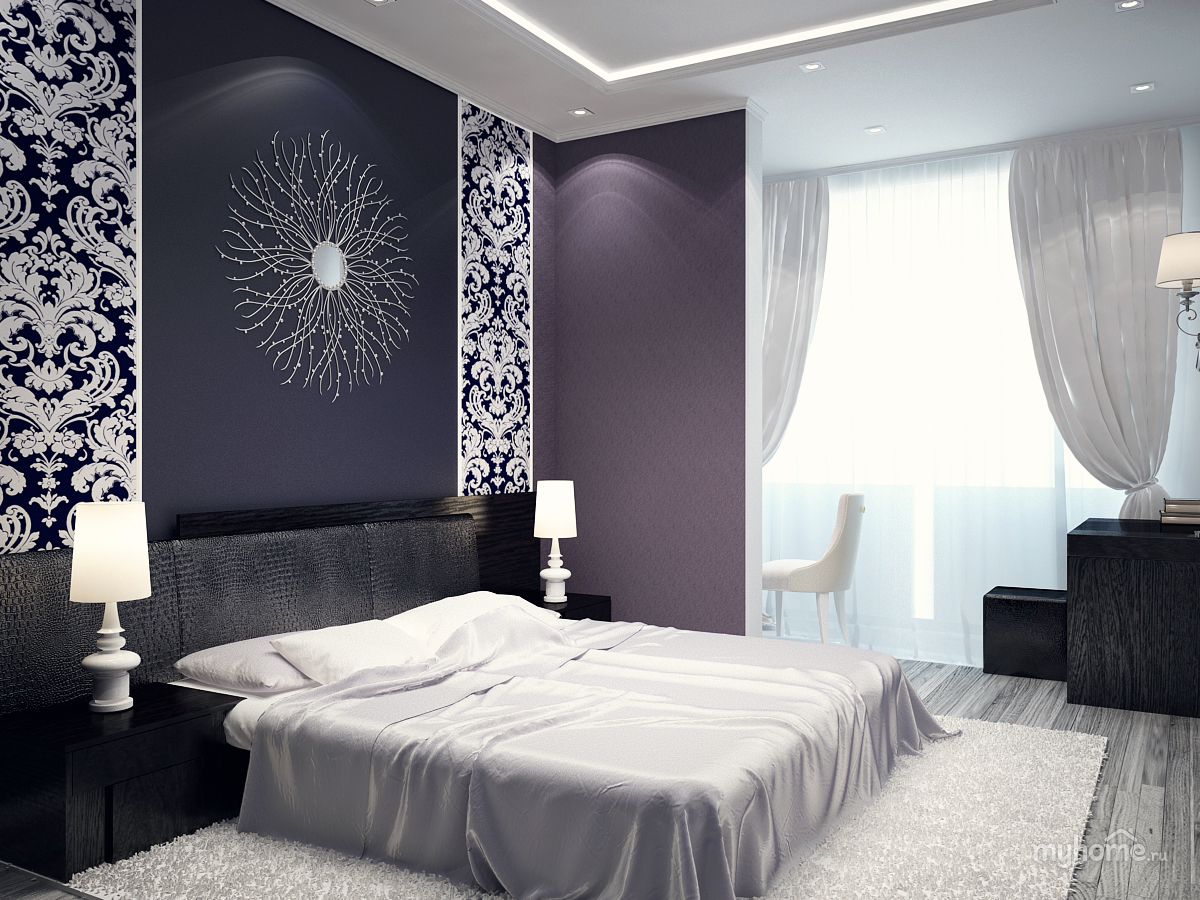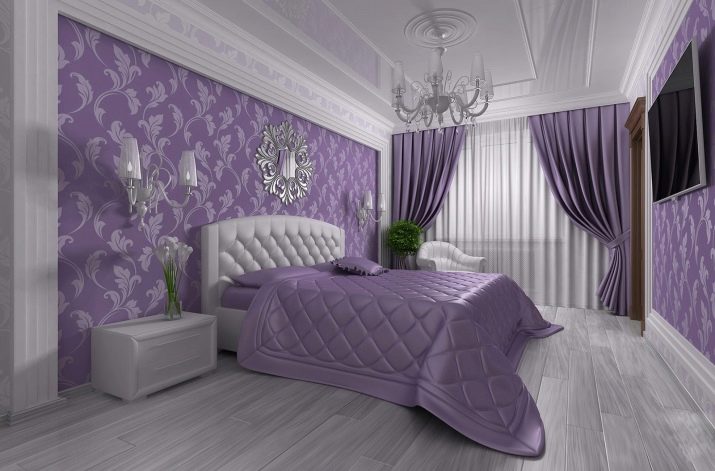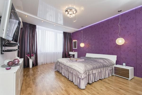 If the room in which the repair is done has a large area, then purple is the most suitable color, which will narrow the excess space. This choice often means oppression and cold, but in fashion circles is considered elegant. It should be noted that sometimes this color is bad for sleep.