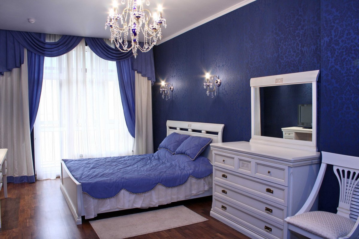 Blue color symbolizes reliability and stability. However, this is a very dangerous choice: if there is a lot of this color in the room, then it can create certain problems with concentration. It is highly recommended to use blue in sunny rooms, where it will absorb an excess of brightness.