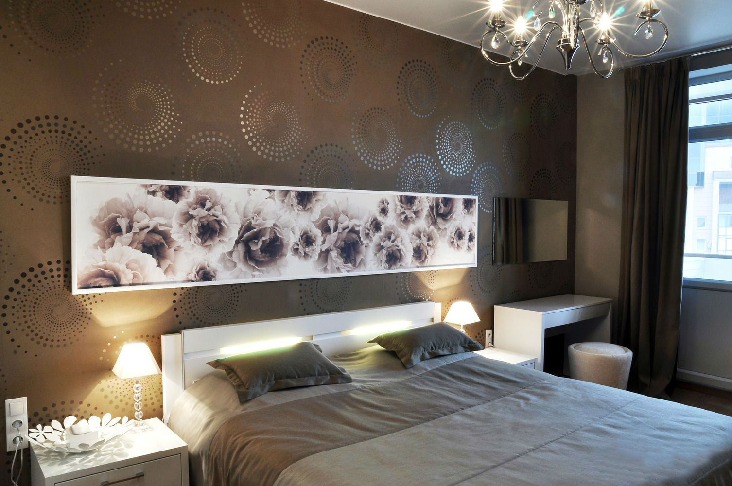 Wall murals require maximum accuracy to avoid overloading the room with patterns. They should be glued on the same wall in the room. In the part of the room where the wallpaper is hung, there should be a minimum of furniture. It is better if they are on the wall next to the bed. The remaining walls should be left as monotonous as possible, they should not have a picture, and their color should be as much as possible combined with the pattern on the photo wallpaper.