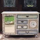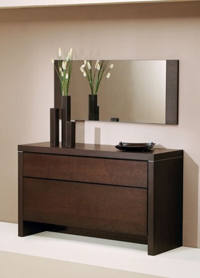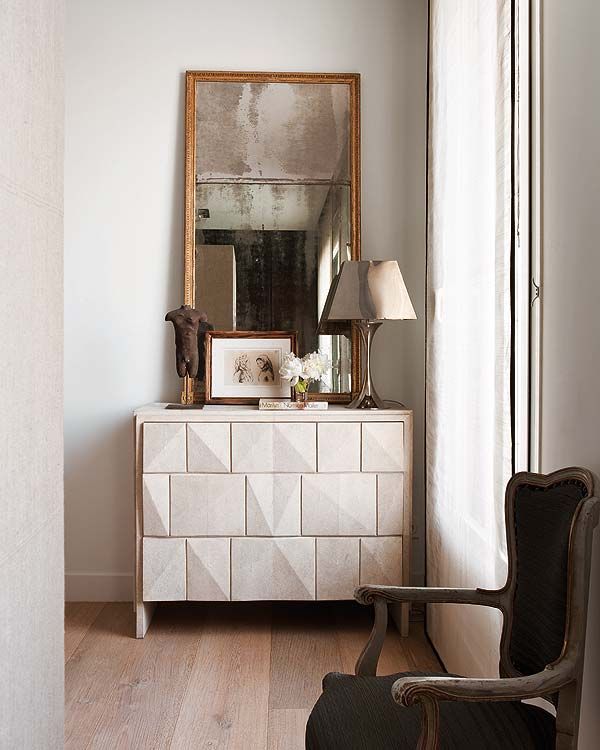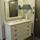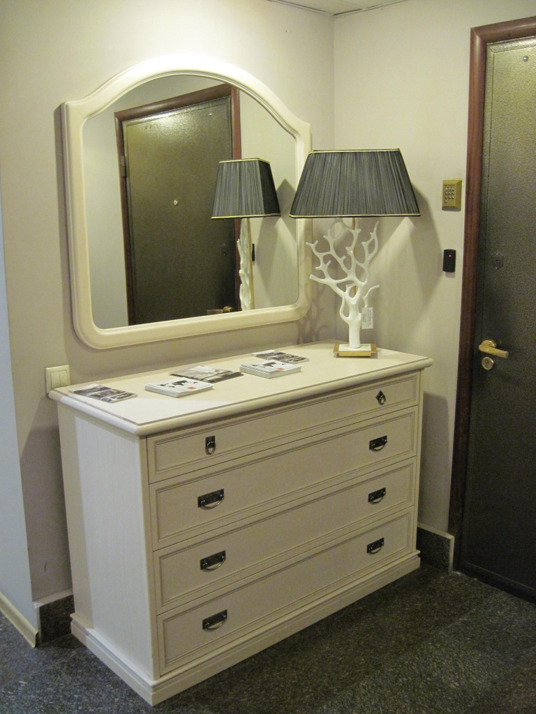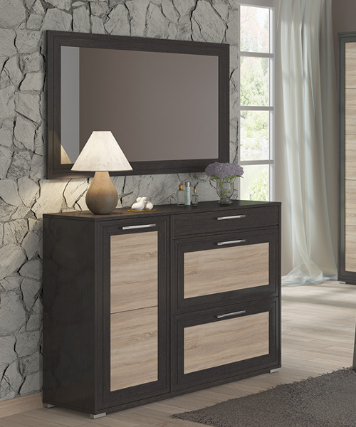 - Chic hinged dresser in combination with a large rectangular mirror.