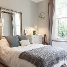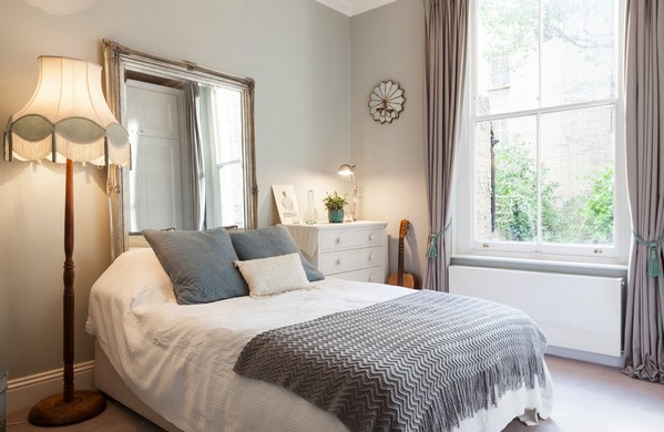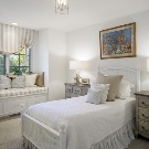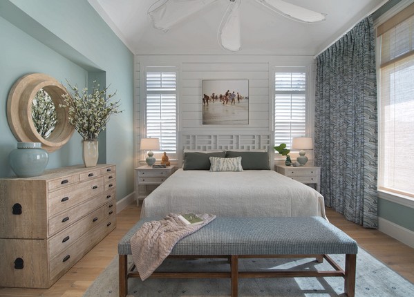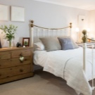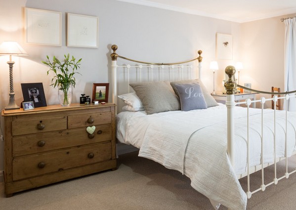 The dresser in the guest room can be decorated with a decorative vase or a picture.