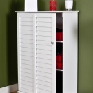 - In the bathroom. Bathroom cabinets are usually offered rather narrow and mobile, combining both open shelves and solid drawers.