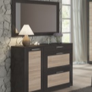 Furniture of the average price category is most often made of chipboard and MDF. Visually, it is very similar to wooden furniture. It is better to make a choice in favor of options from MDF: they are characterized by high strength and resistance to external influences. Chests of chipboard, as a rule, laminated or veneered. Laminated coatings are moisture resistant and durable. Commodes, covered with veneer, imitate wood surface better and are distinguished by high aesthetics.