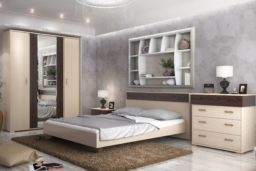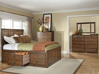 If the bedroom is spacious, a chest of drawers can come complete with a dressing table, armchair or pouf - this forms a single style.. When creating an interior in the bedroom, first of all, convenience and comfort are taken into account. Modern furniture fittings largely succeeded, becoming not only more reliable and beautiful, but also more comfortable to use. The silent opening system of the drawers and the gentle closing of the doors have a beneficial effect on rest and sleep. It is especially important that the bedroom furniture is made from natural eco-friendly wood.