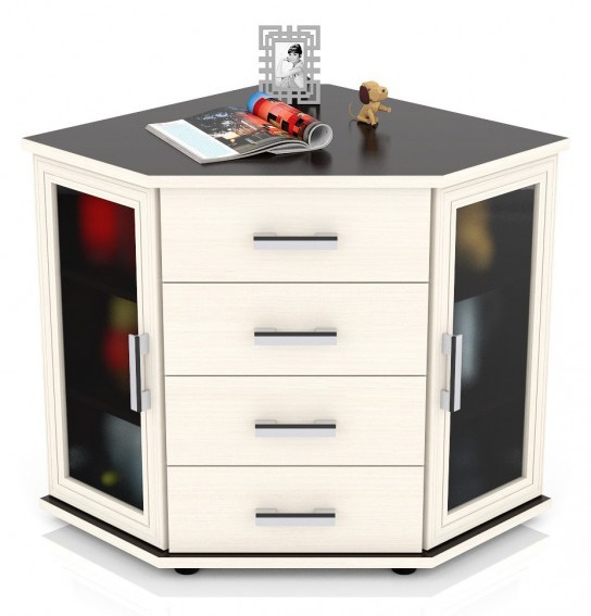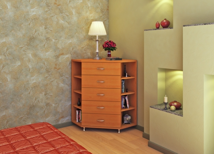 Corner models - the best solution for apartments and houses with a limited area, as they allow to save space. Corner chest of drawers can be very different widths and vary in shape, most importantly, choose an option that fits well into your interior. Features of angular dressers: