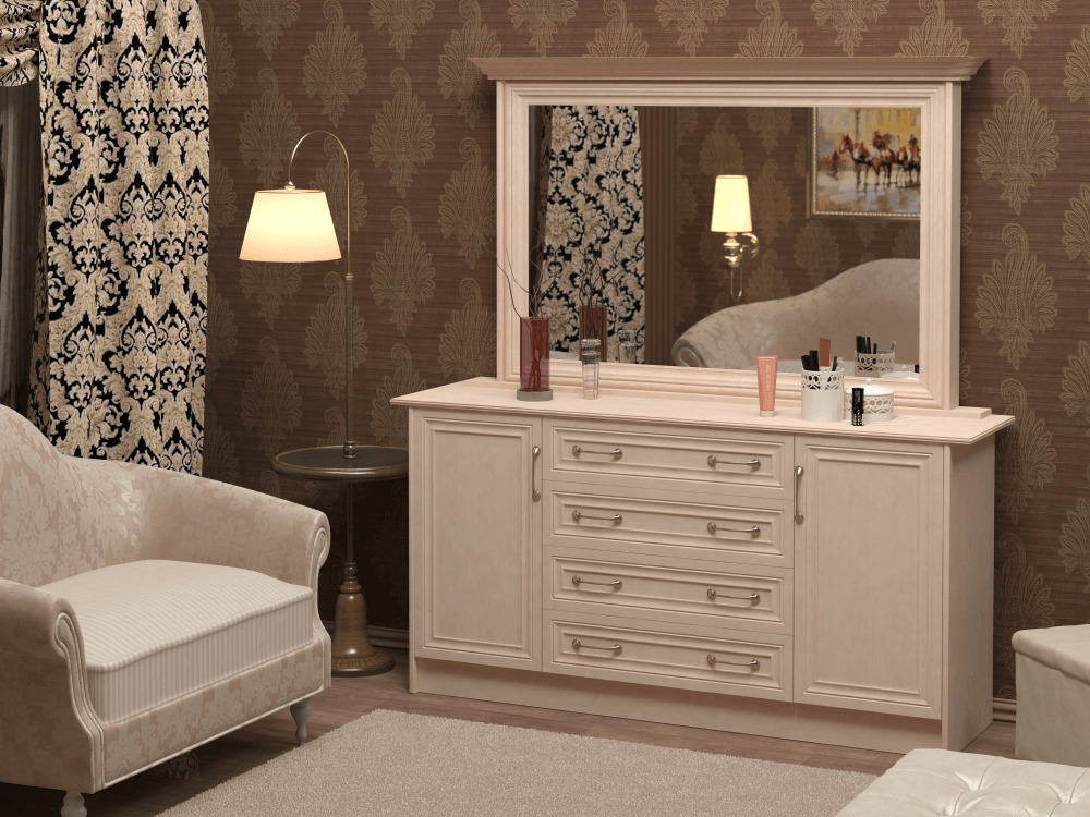 A good dresser can be much more practical than a standard cabinet. And if you pick up a suitable mirror to it, you get a dressing table. Spacious drawers help in sorting things, so maintaining order in the dresser is much easier than in the closet. On the surface of the product you can place frames with photos, souvenirs, houseplants, or even put a TV.