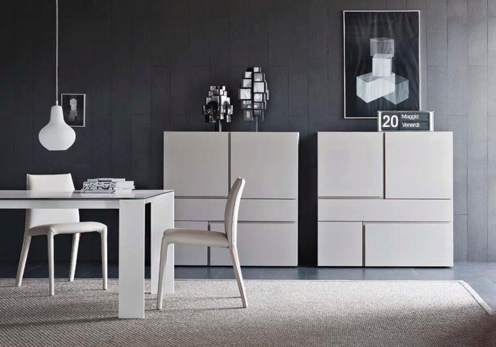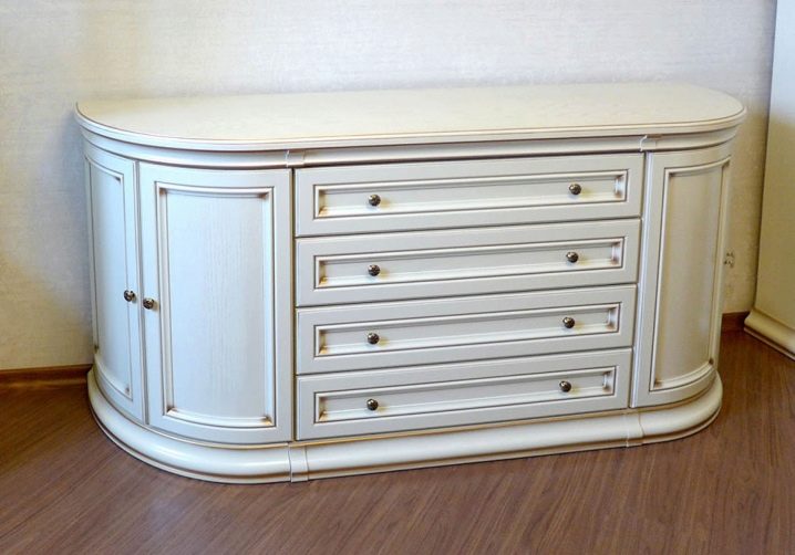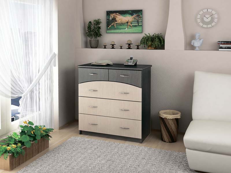 The chest of drawers are often included in the bedroom or kitchen set, as well as in the furniture for the study and living room, but also sold separately. In the bedroom, he easily turns into a dressing table, just hang a mirror over it.
