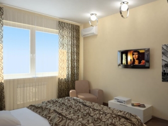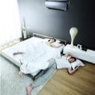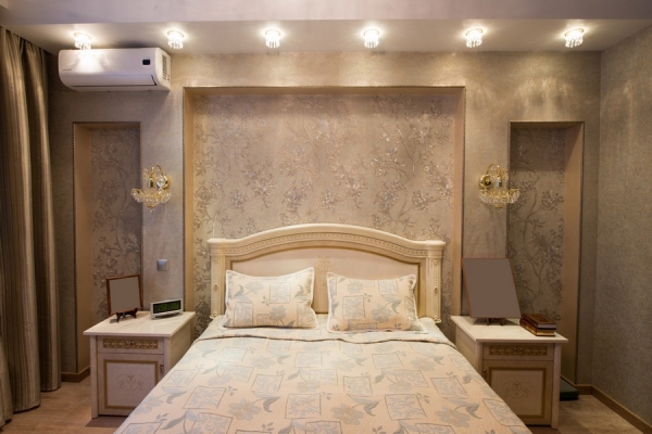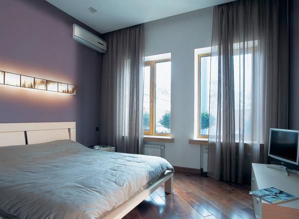- Air conditioning is not desirable to place in front of the bed. This will lead to the fact that the flow of cold air will interfere with a person to sleep. The best solution would be a place above the bed.