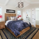 Large carpets with a length or width of more than 2.5 meters attract the eye, so it is desirable that they be calm colors and without patterns. As a rule, they are located under all the furniture in the room - under the bed as well, it will be very nice to walk barefoot on such a carpet in the morning.