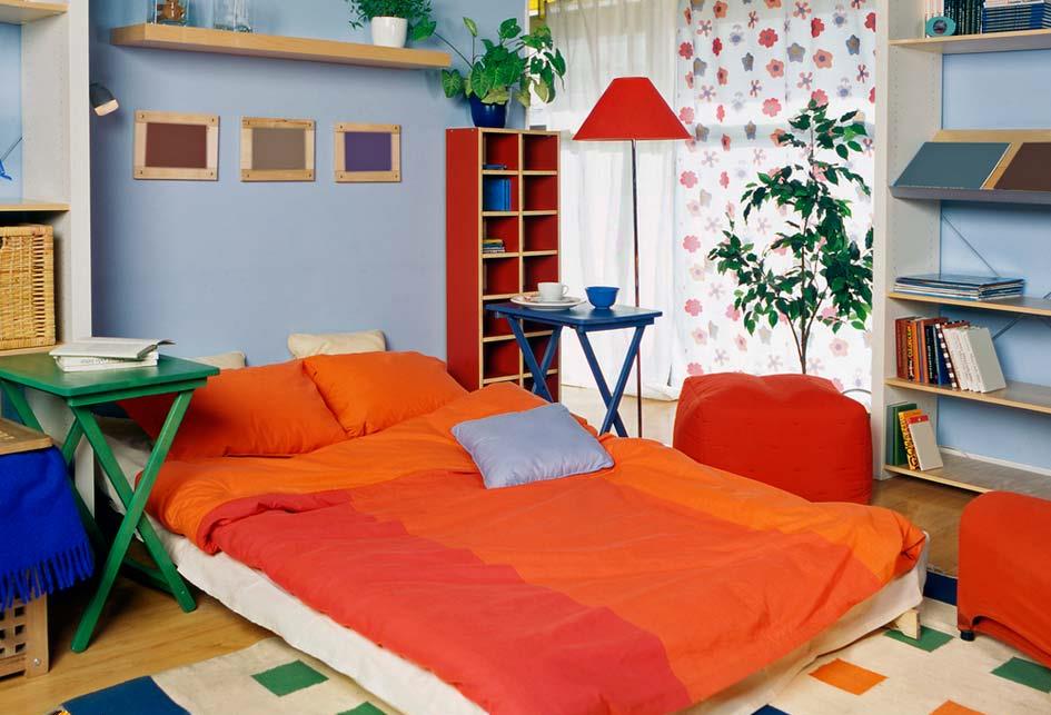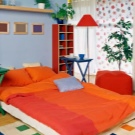Furniture may also be the same color as the carpet.A gray bed can stand on a gray carpet, and a chest of drawers with red legs can comfortably sit on a coral. But we are talking, rather, about approximate similarities, but not complete - the furniture should not merge with the carpet, they should differ from each other in texture, saturation of tone or pattern.