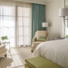 You can choose a carpet of the same color as the curtains or bedding, a lamp or a chair pouf, since these small details are also able to transform a room beyond recognition and it will be just fine if they are all made in a single color scheme.