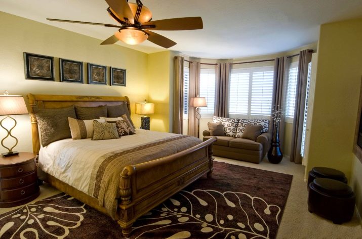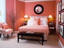 The classic scheme - a bedroom decorated in a single tone, complemented by another similar shade on the carpet.. The main thing here - do not overdo it, choose one or two similar colors for the main ones and keep clear of sharp contrast (like on a tiger, for example).