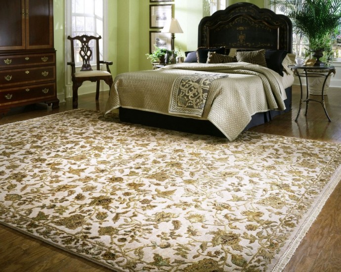 Depending on the size of the bedroom is chosen and the size of the carpet. As a rule, they are divided by size in the following way: