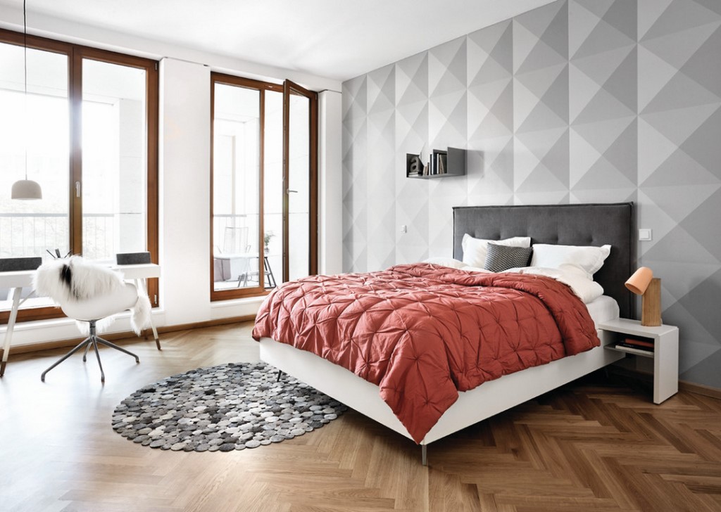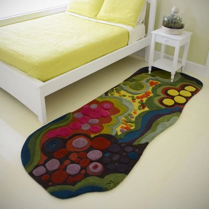 If you go further into this topic, you can find out that carpets even have their own subtypes. For example, the track. The carpet is an elongated rectangle that can be up to a meter long or a little more. This is not the best option directly for the bedroom, because the room is almost never has a pronounced elongated shape, but it will look good in the corridor or on the stairs.If the bedroom is upright a little longer than horizontally, pay attention to asymmetrical carpets - round or skin type, which should be located just under the rear legs of the bed.
