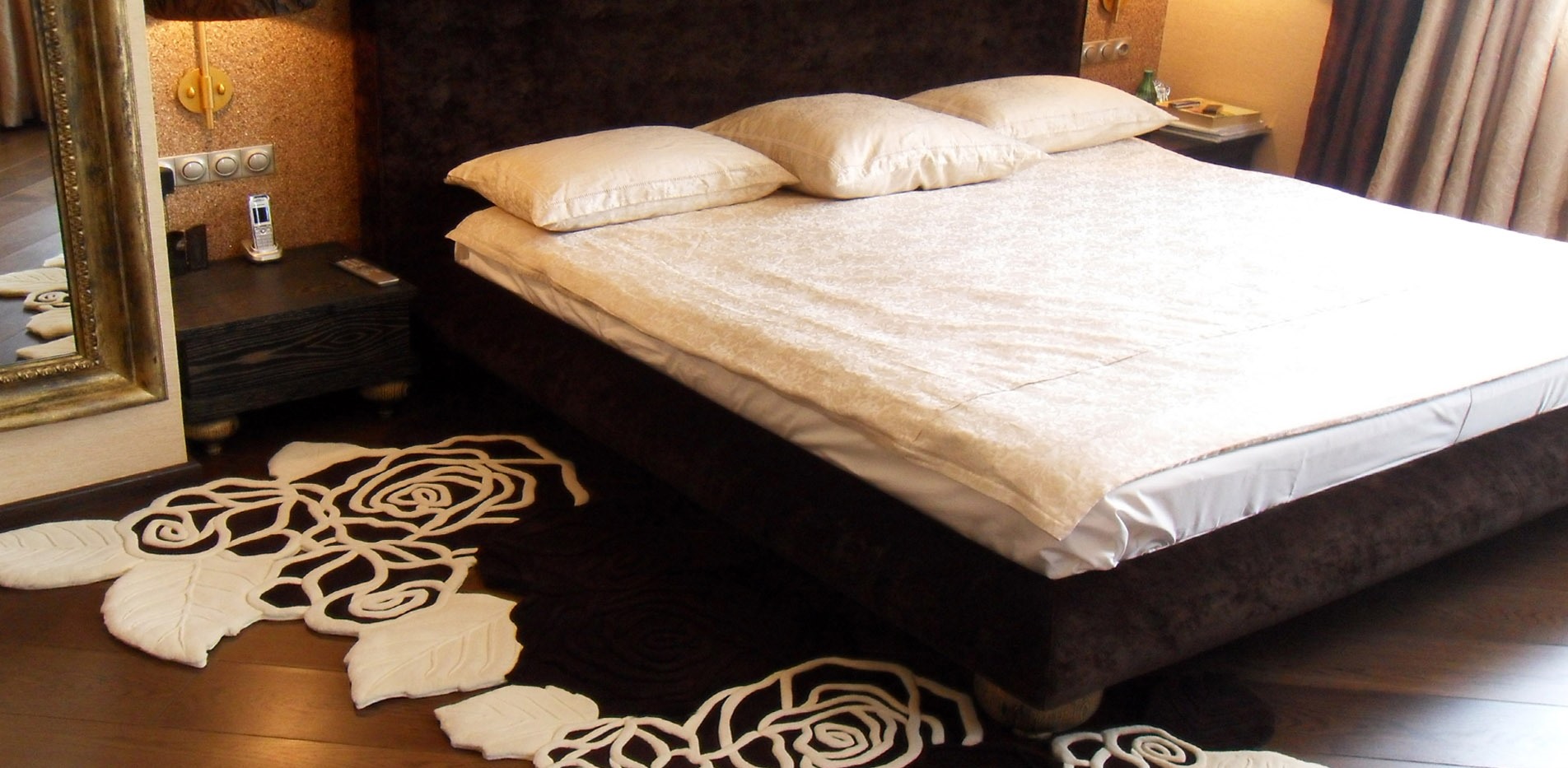 Many people think that the main thing in the bedroom is the bed. Wide and soft, it is she who gives the room comfort. This is not entirely true. The details on the bedside table, the curtains, and, of course, the carpet are important for the cozy atmosphere of any room.