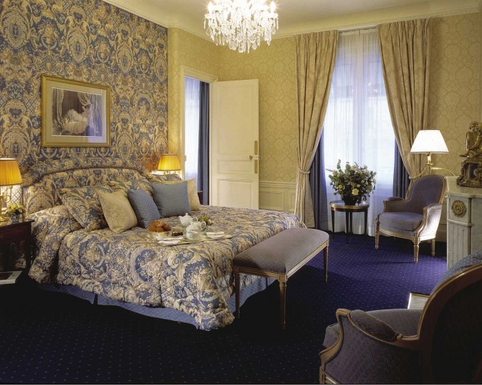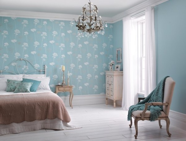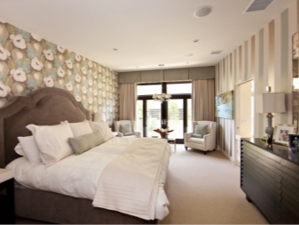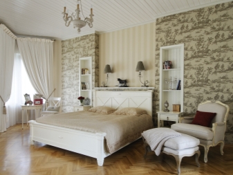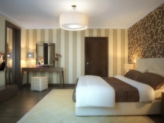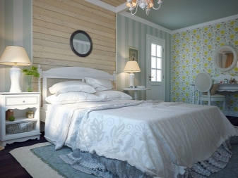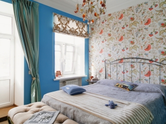 You should not bypass the ethnic trends in the interior.Most often for the design of bedrooms used English style. The characteristic features of this trend are in light shades, lightness and freshness, which gives the whole situation in the room. In this style, the combined wallpaper looks most harmonious.