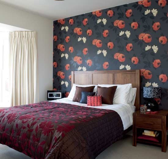 In the bedroom, it is best to focus on the wall next to the head of the bed. Many designers recommend choosing for this purpose coatings with pictures. But in this matter it is necessary to focus on the overall design of the room.
