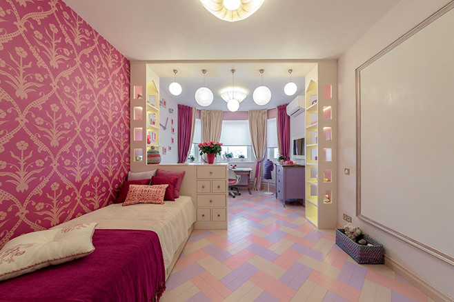 - division into zones. With the use of wallpaper companions, you can clearly identify certain functional areas in the room.