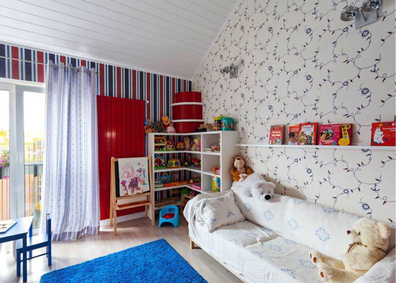 If the room has high ceilings (3 m), it is better to give preference to wallpaper with a large pattern. You can focus on the wall using horizontal stripes in different colors.