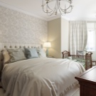 Old or modern classics firmly settled in the interior of the bedroom - a massive bed with a high headboard, a heavy wardrobe, an elegant chest of drawers and warming family photos on the walls. For the classic bedroom is characterized by the use of natural wood in furniture and discreet prints on wallpaper and textiles. In the classics there is no minimalism, on the contrary, in the interior of such a bedroom there should be a lot of furniture, textiles and other accessories that create home comfort.Soft carpet on the floor, long heavy curtains or porters, paintings on the walls, vases, pillows, mirrors become an obligatory element.