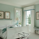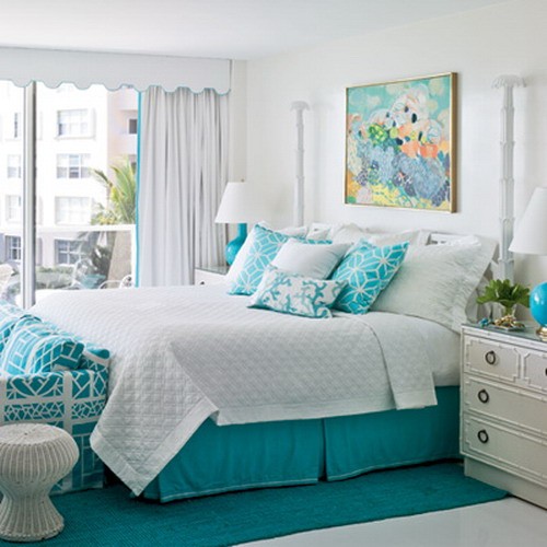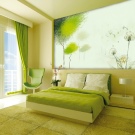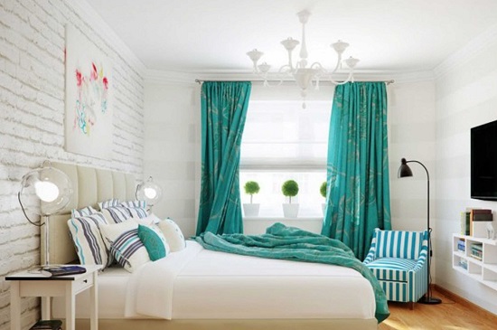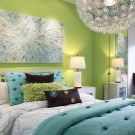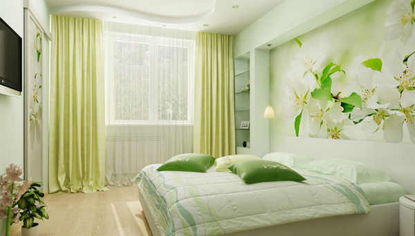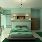 The bedroom in blue and green tones disposes to rest and quietpastime. Choose light mint shades and combine them with white and beige colors in furniture and textiles.