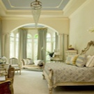 Diversified white and light walls will help stucco and carved elements on the furniture - the head of the bed, cabinet doors, chairs, couches, chairs, a table and others.