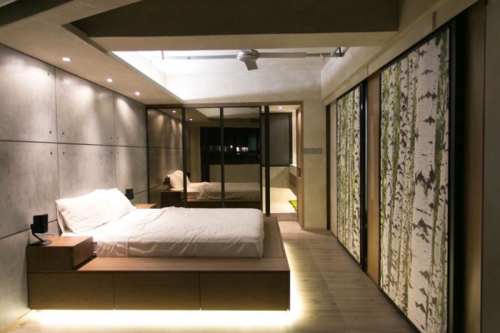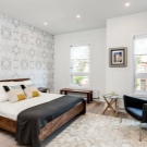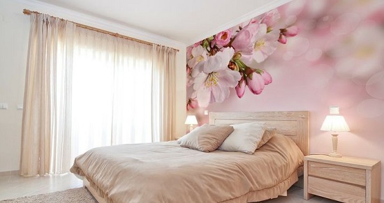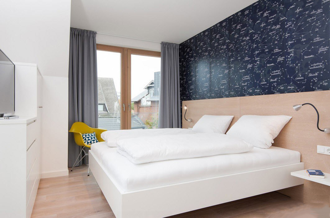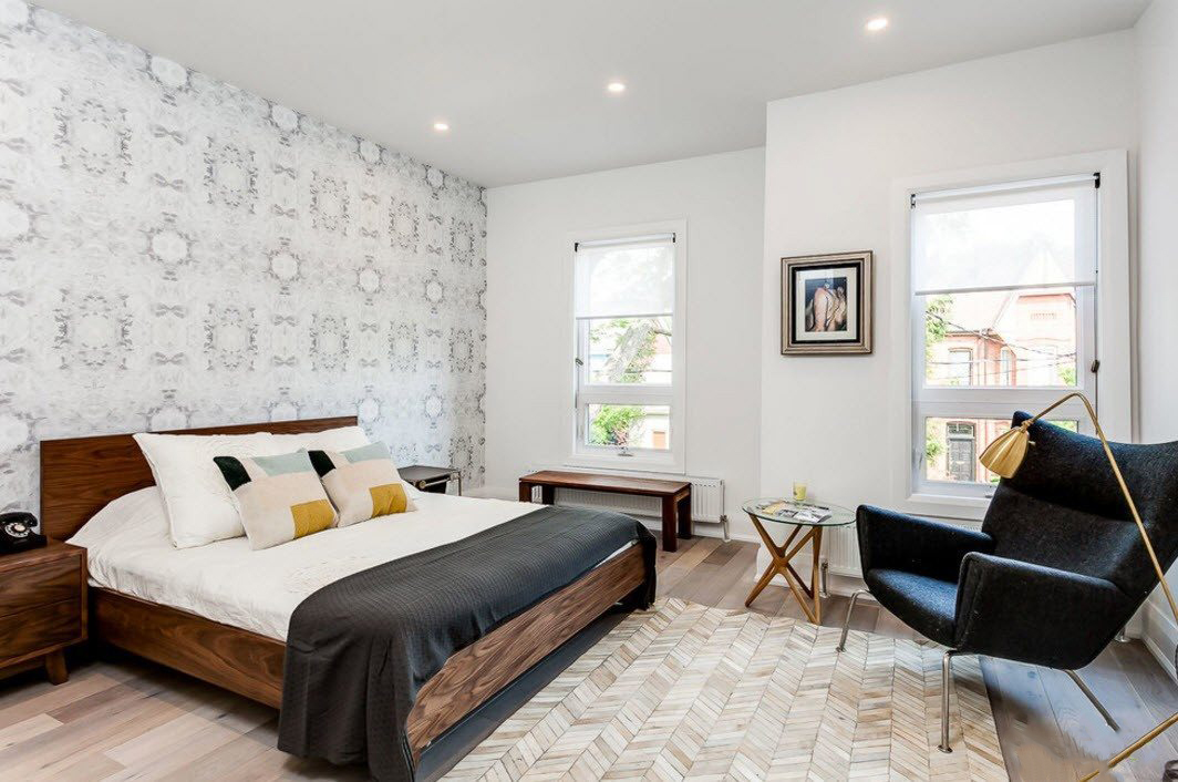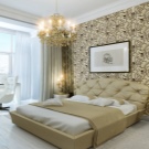 Designers are increasingly preferring bedrooms with an accent wall, which differs from others in pattern, ornament, texture. The accent wall, as a rule, is in harmony with the main shade of the room and visually separates the space, does not make it boring. Near it is usually placed head of the bed, or in general it is not cluttered with anything. Especially good and unusual look different textures - wood, stone, glass, different from the main walls.