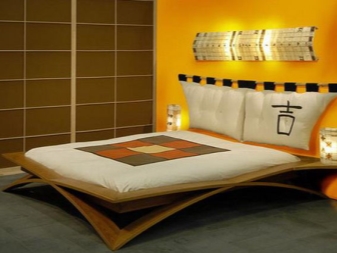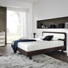 A plain wooden bed with a low headboard is the most practical and simple choice. To make the bed not only a bed, but also a place for storage, choose a model with a lifting mechanism. Bright bedroom looks stylish with a dark bed and it does not matterwill be the last massive or elegant.