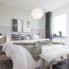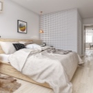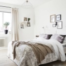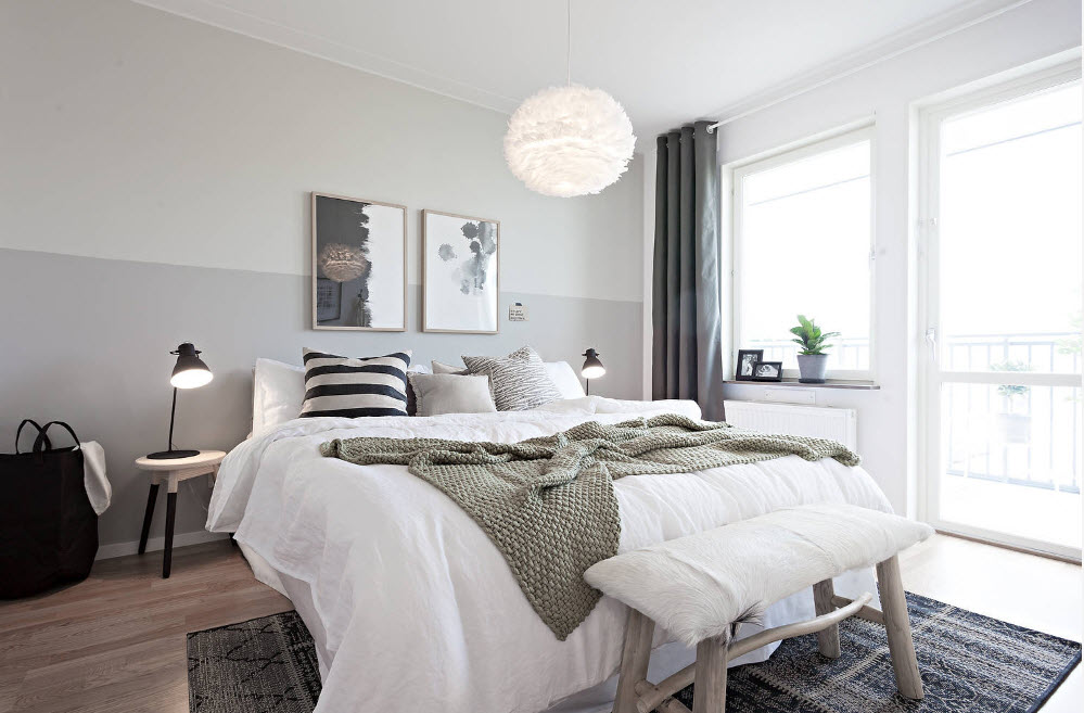 The style in the interior is characterized by comfort and minimalism, simplicity and comfort. This bedroom is really bright, not only due to the decoration, but because it has a lot of light thanks to large windows or correctly placed lamps with daylight. Furniture in the Scandinavian style is practical and natural, mostly wood or metal. Instead of a high cabinet there are hinged shelves, instead of a carpet with gold threads and fringe there is a modest cotton walkway or a sheep skin rug, instead of bedside stands there are small tables in the form of a stool.