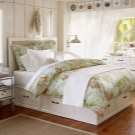 In the "Scandinavian" bedroom creates space for storage of things, so it is advisable to choose a bed with a lifting mechanism or drawers, mounted storage systems and endless shelves (mostly open). To feel this style and be inspired by ideas, pay attention to the models of bedrooms from Ikea, where practicality and minimalism are reflected.