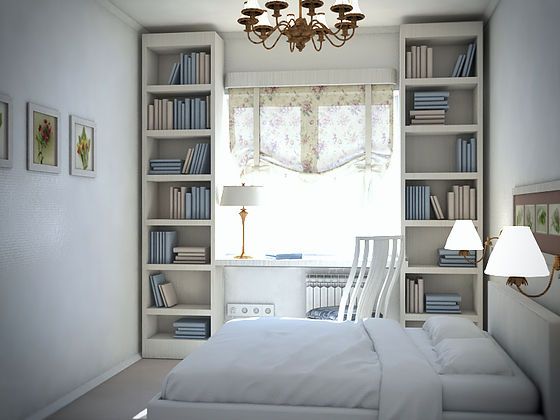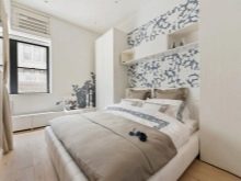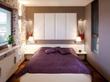 In a very small bedroom, designers recommend making practically snow-white “light” walls and installing light furniture. They offer to divert attention from the size of the room with the help of accents - an unusual picture, colored pillows, contrasting textiles or furniture parts - headboards, dressers, and wardrobe design.
