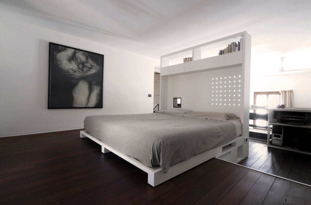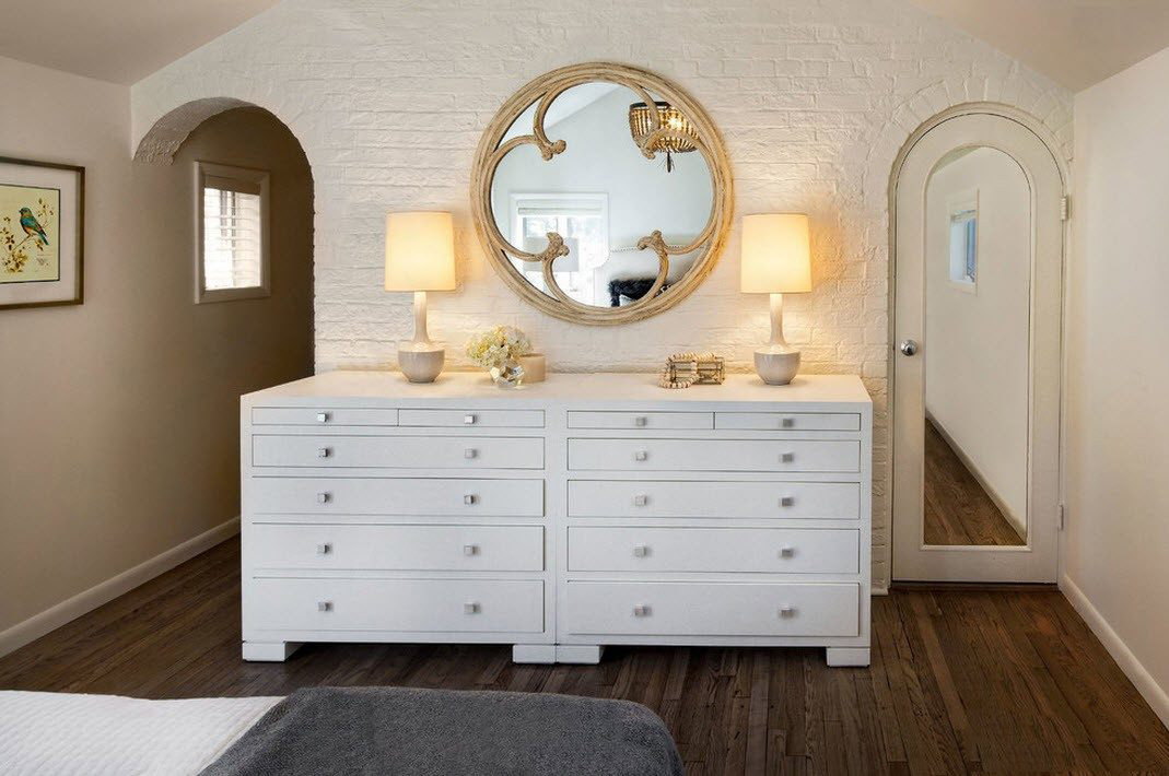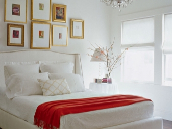 Snow-white walls and cons. For example, they may just get bored or get tired over time. Then come to the aid of paintings and photo frames, which will dilute the space and hide its flaws. If the bedroom is located on the north side, then the white walls will be inappropriate, because they will bring coldness into the bedroom and take comfort.