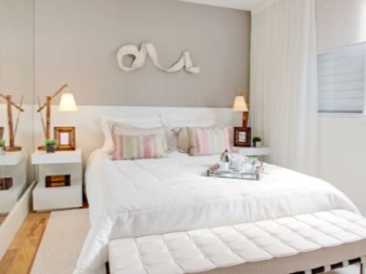 - Light interior - not only white and beige. It can be muted pastel shades of blue, lilac, lemon, pink, gray and other colors and even black, creating a contrast or accents in the bedroom;