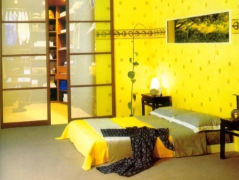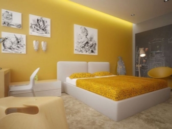The yellow bedroom looks original, stylish and modern, incredibly warm and sunny. It will be the perfect solution for the north side of an apartment or house.