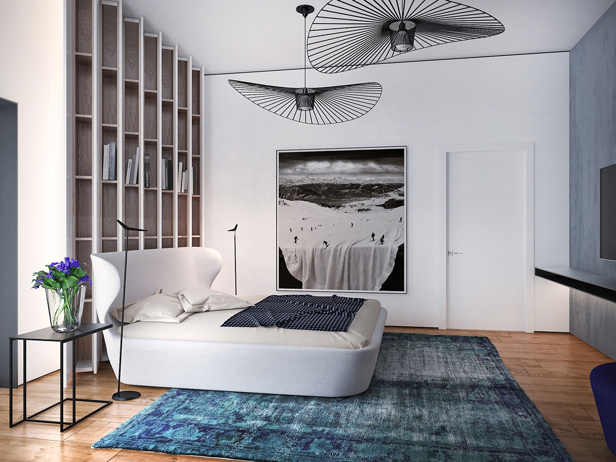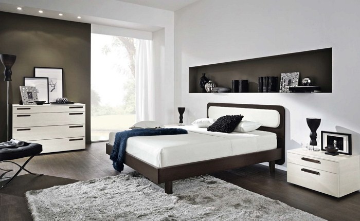 - They are combined with almost any other colors. and allow you to place accents in the bedroom interior easily: a green or blue carpet in a white room will look great and by the way;