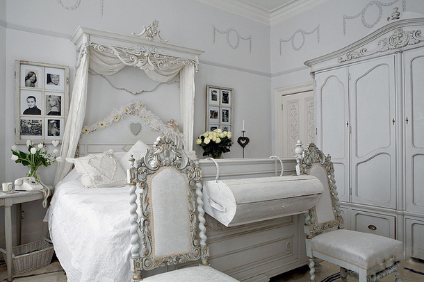 Floral patterns, black forged bed, exquisite white furniture and an abundance of contrasting textiles are the rooms of the modern lady who prefers comfort to delights.