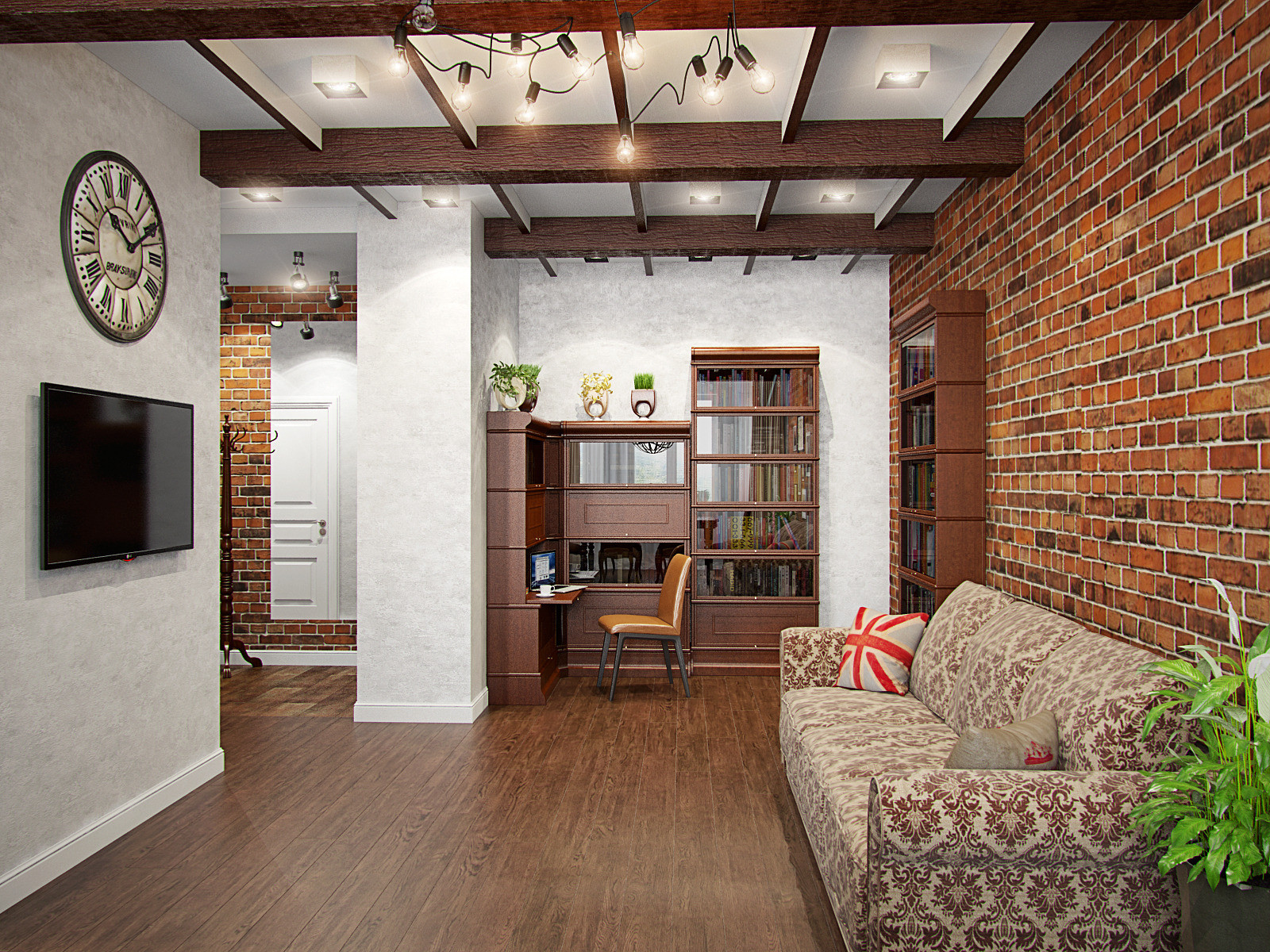 Loft style looks good in a large square and a room with high ceilings, where there is a place to roam. In a small odnushke loft, at least, will be inappropriate, as the maximum - will create a feeling of incompleteness of repair.