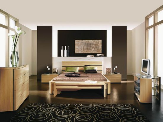 This style is following fashion and using the most current trends in the interior of a room or apartment. The bedroom in modern style is usually made in muted shades and is not devoid of naturalness - wood, glass and stone. If we talk about colors, the priority is gray, beige, brown, white and black shades, a little less - blue, green and yellow (not screaming), which, rather, become an accent and are present in one or two pieces of furniture or decor.